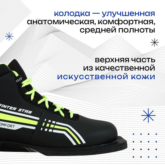 Ботинки лыжные Winter Star comfort, цвет чёрный, лого лайм неон, 75, размер 39 Winter Star 7881759 .