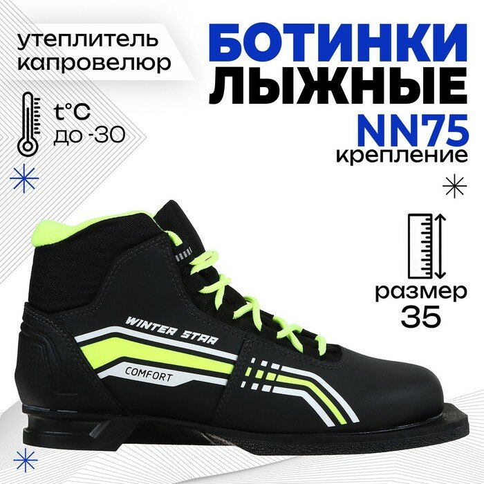 Ботинки лыжные Winter Star comfort, цвет чёрный, лого лайм неон, 75, размер 35 Winter Star 7881755 .