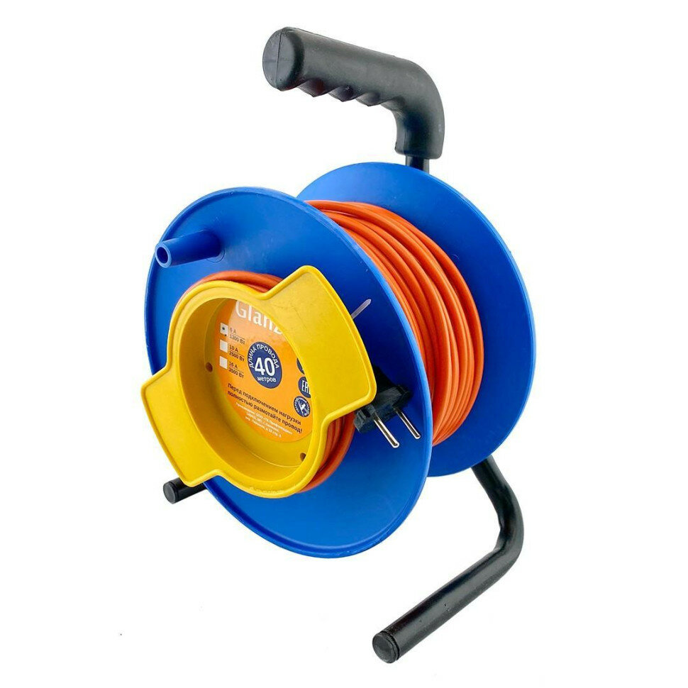Удлинитель силовой на катушке GLANZEN ПВС 2х0,75 40м EC-40-001 1300Вт IP20
