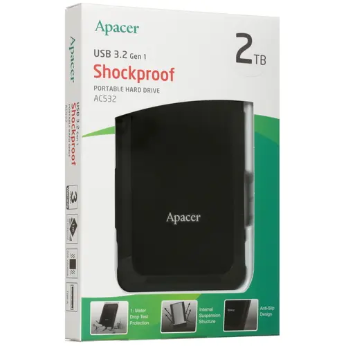 2.5" 2TB Apacer AC532 AP2TBAC532B-1 USB 3.1, Shockproof, Win/Mac/Linux, Black, Retail {20} (915290)