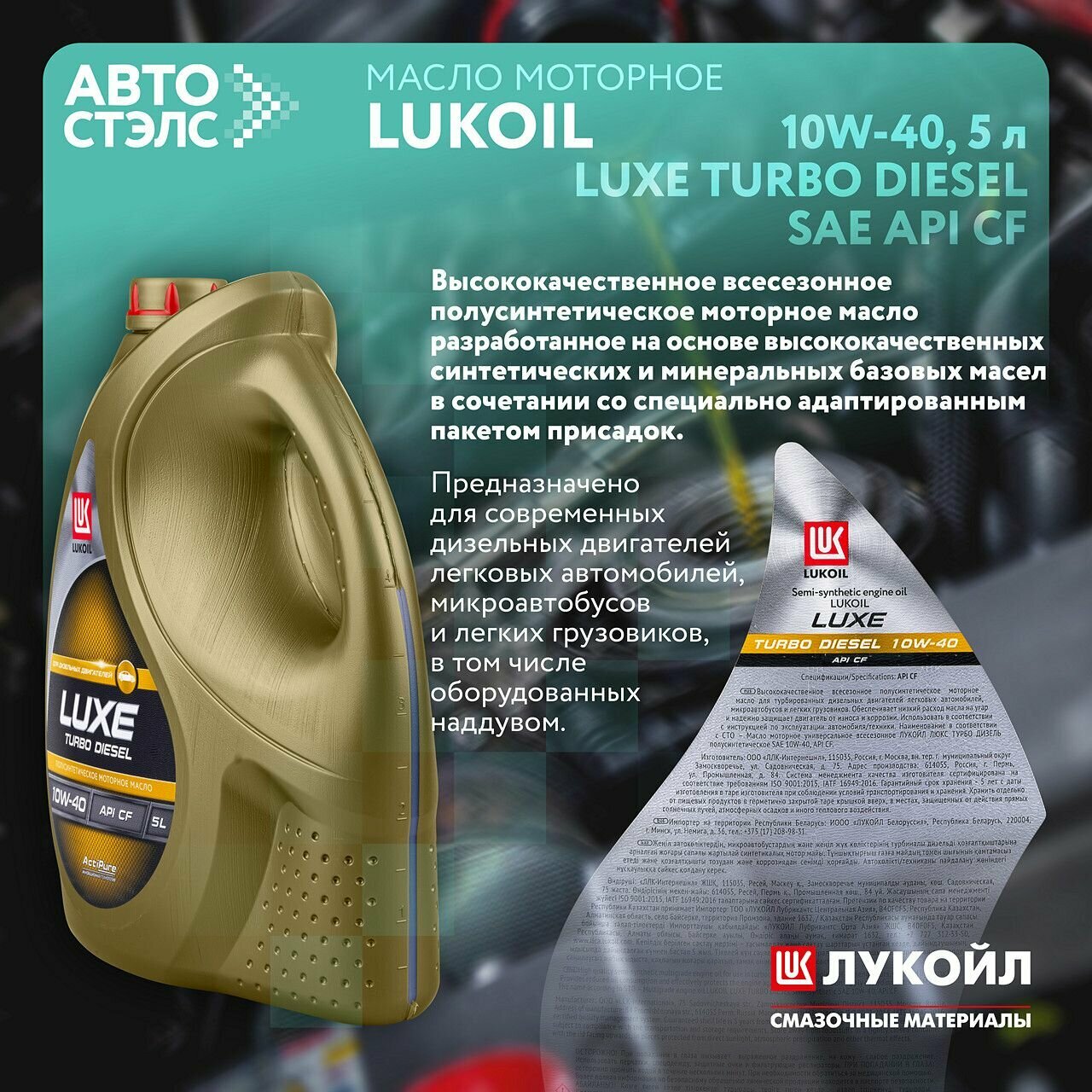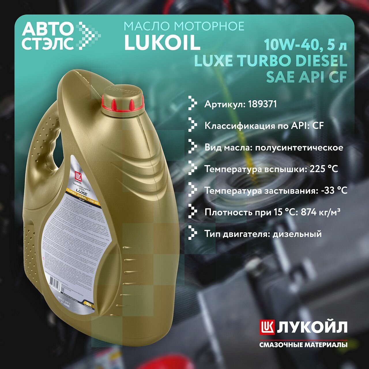 Масло моторное лукойл люкс турбо дизель cf 10w-40 полусинтетическое 5 л 189371