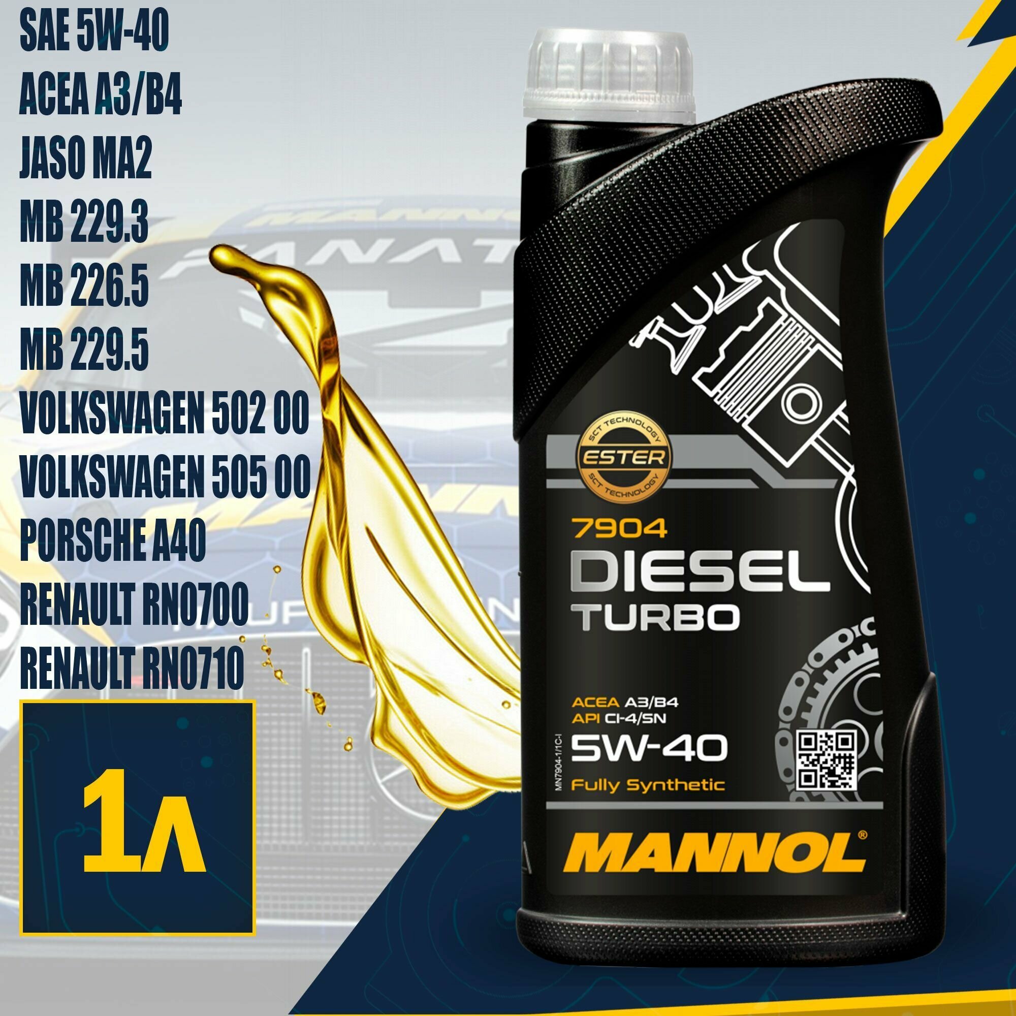 7904-1 mannol diesel turbo 5w40 1л. sn/ch-4 синтетическое моторное масло 5w-40