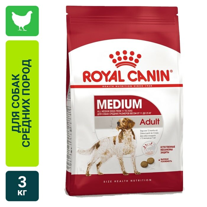 Корм Royal Canin Medium Adult для собак средних пород (11-25 кг), 1-7 лет, 3 кг