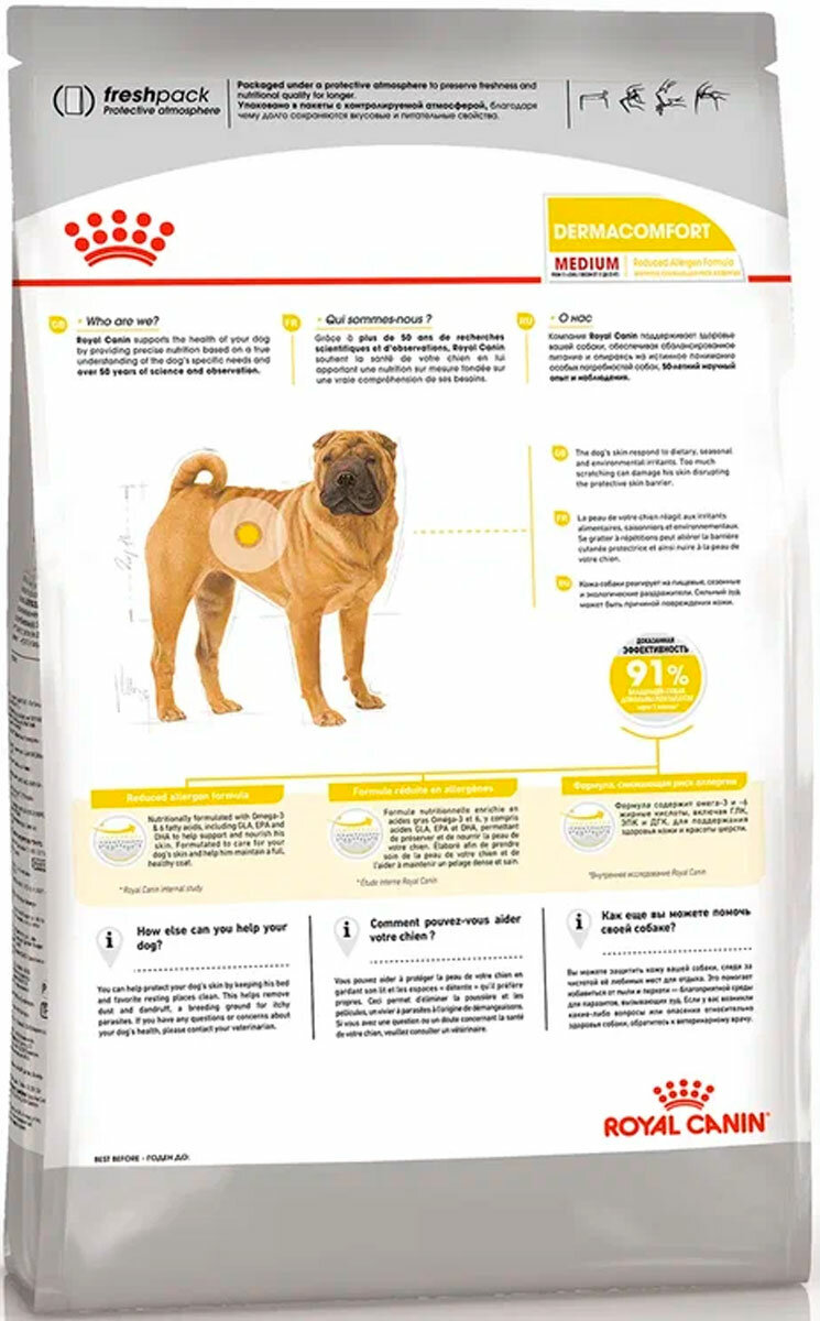 Royal Canin Medium Dermacomfort / Сухой корм Роял Канин Медиум Дермакомфорт для собак Средних пород с Кожным раздражением и зудом 3 кг