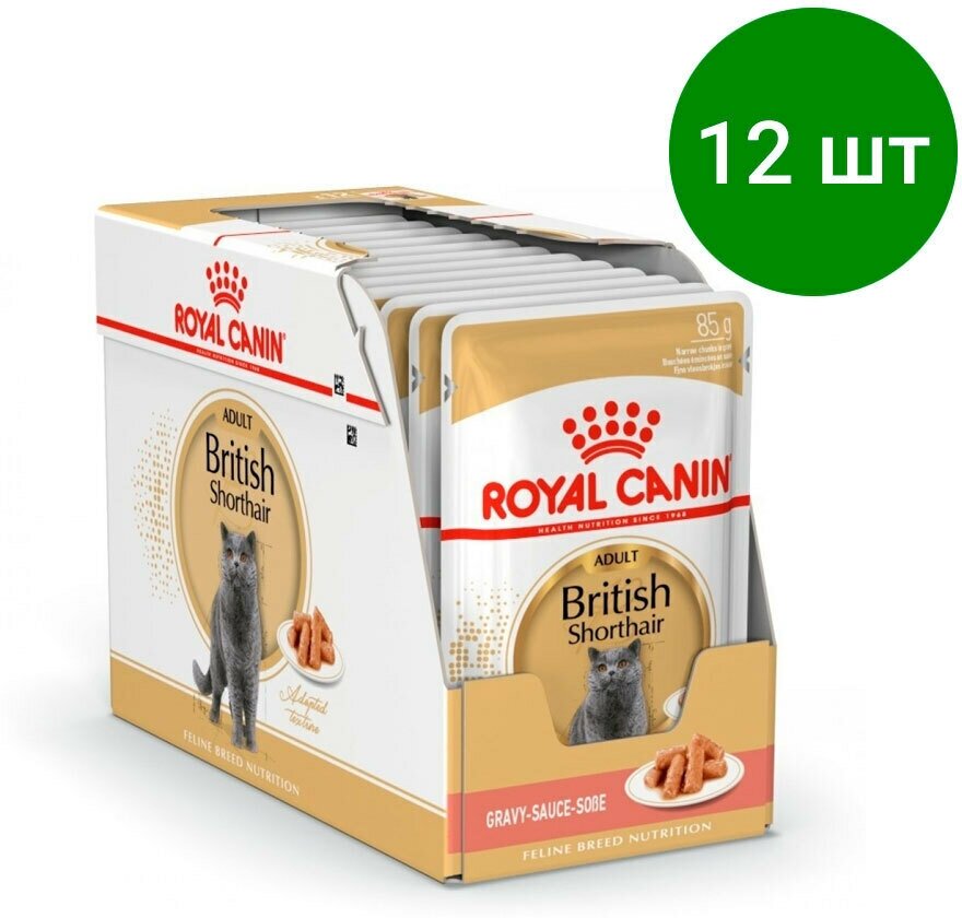 Royal Canin корм в соусе для кошек старше 12 мес, британской короткошерстной породы British Shorthair Adult, 85 г, 12 шт