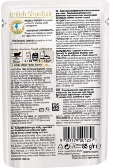 ROYAL CANIN BRITISH SHORTHAIR ADULT для взрослых британских короткошерстных кошек в соусе пауч 85 гр 85 гр х 5 шт