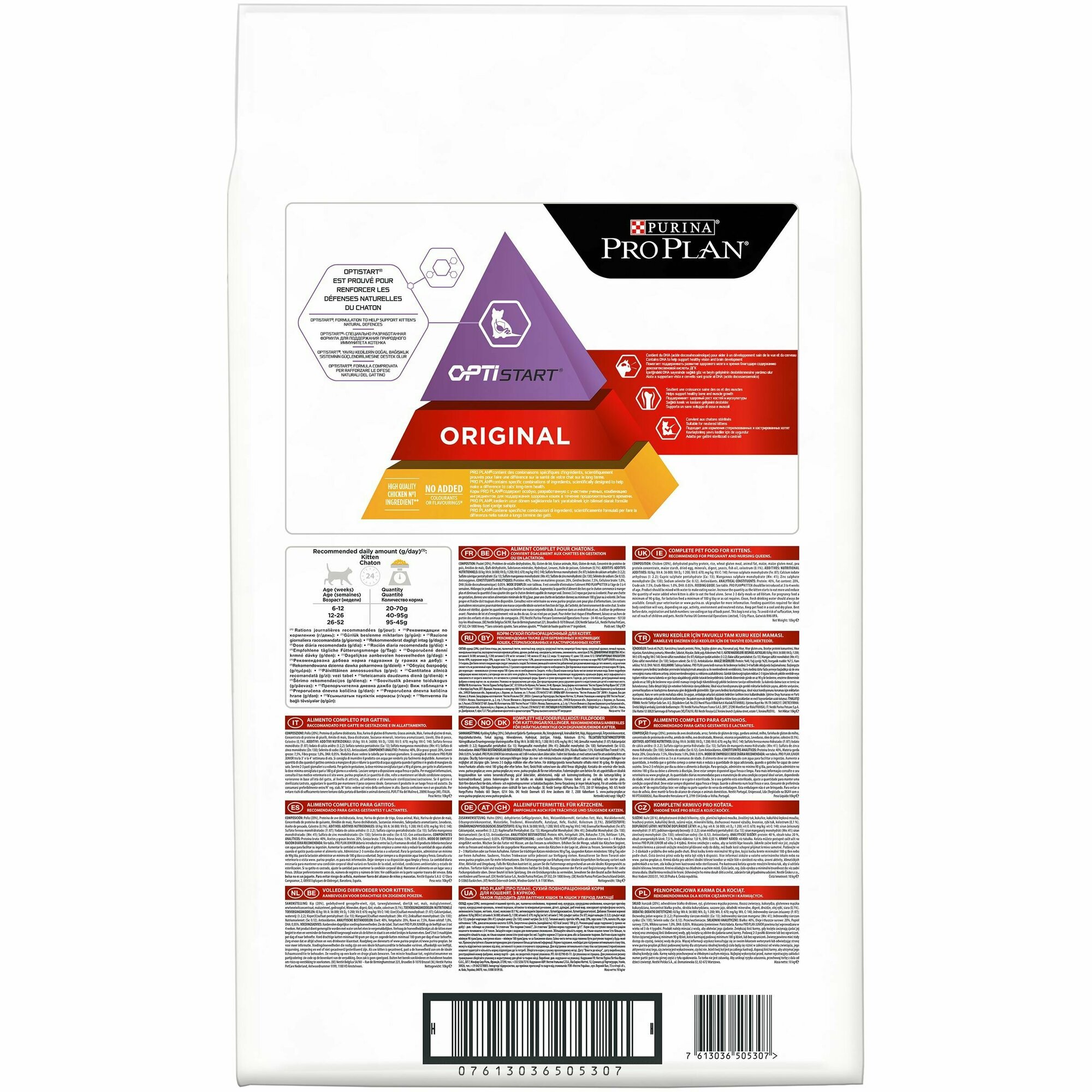 Сухой корм для котят Purina Pro Plan ORIGINAL KITTEN OPTISTART, с высоким содержанием курицы, 6 шт. х 1.5 кг