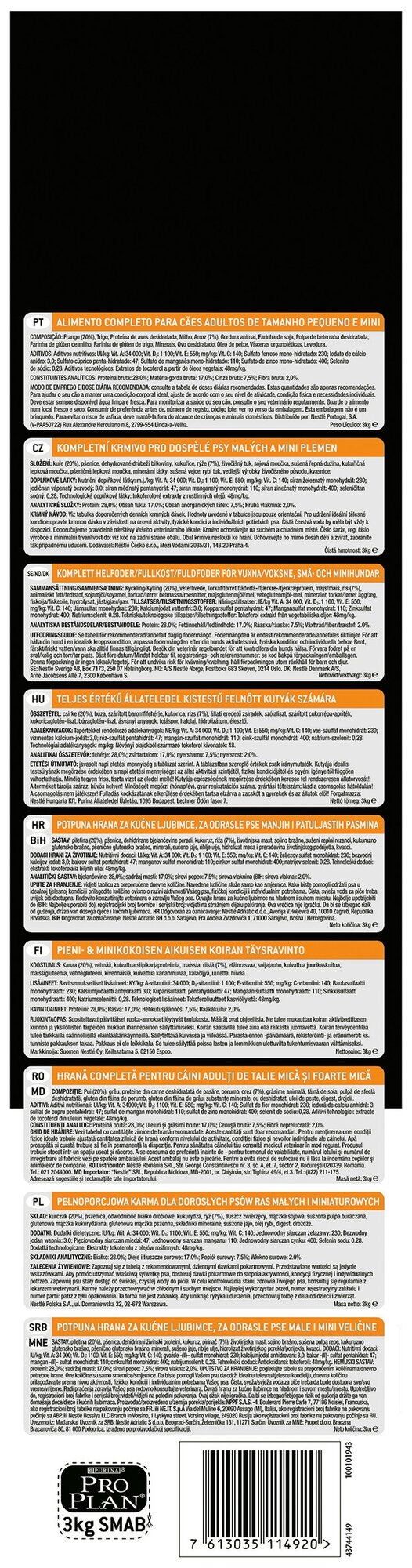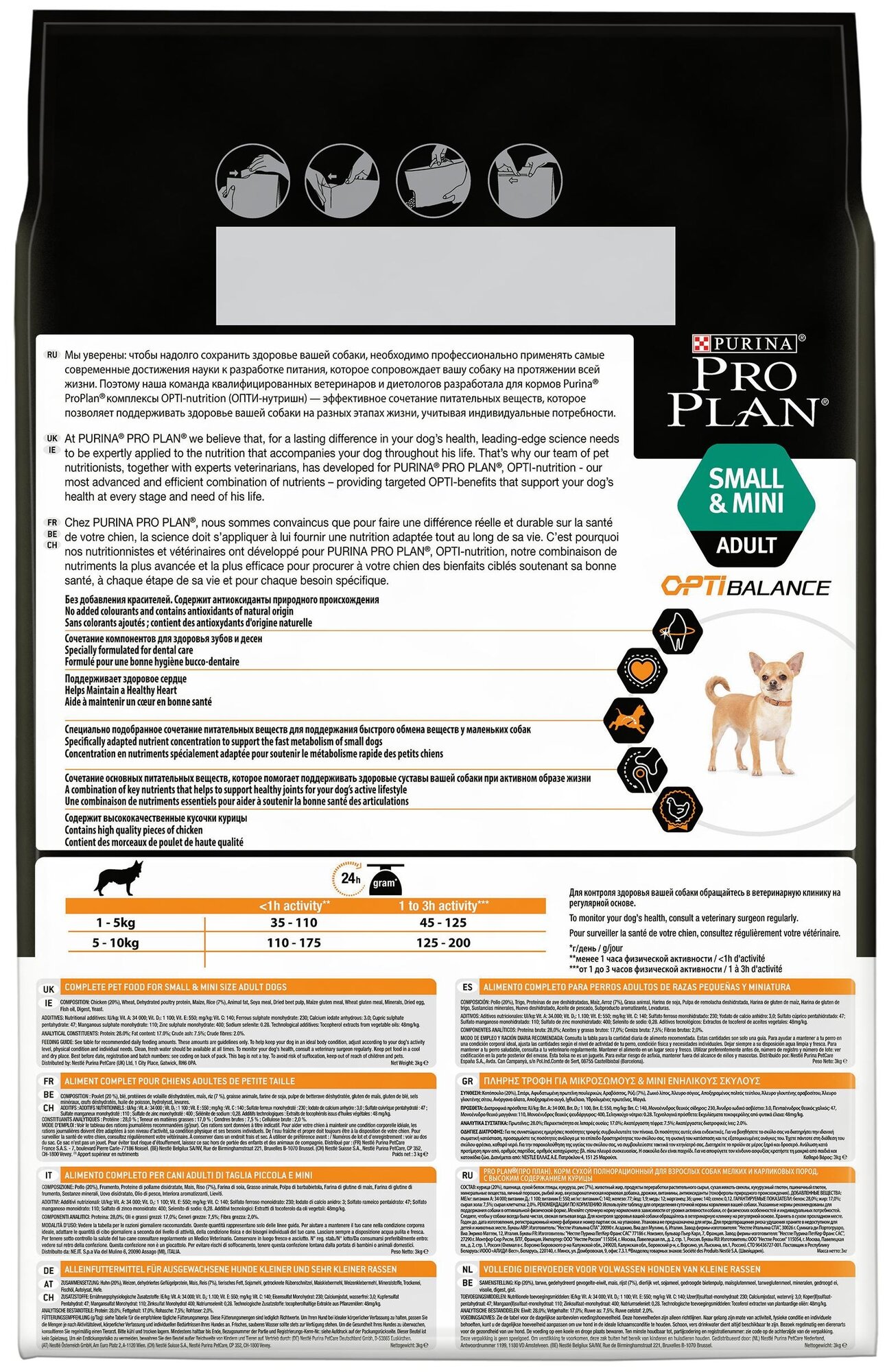 Pro Plan Small & Mini Adult корм для взрослых собак мелких и карликовых пород Курица, 3 кг.