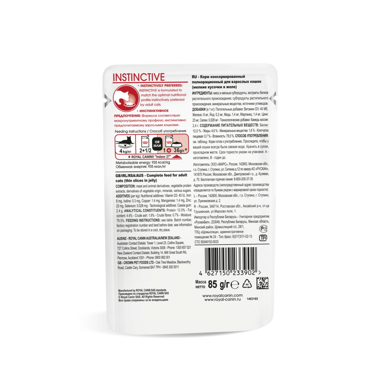 Влажный корм для кошек Royal Canin Instinctive 85 г (кусочки в желе) Цена за упаковку,в упаковке 12шт(12штх85г)