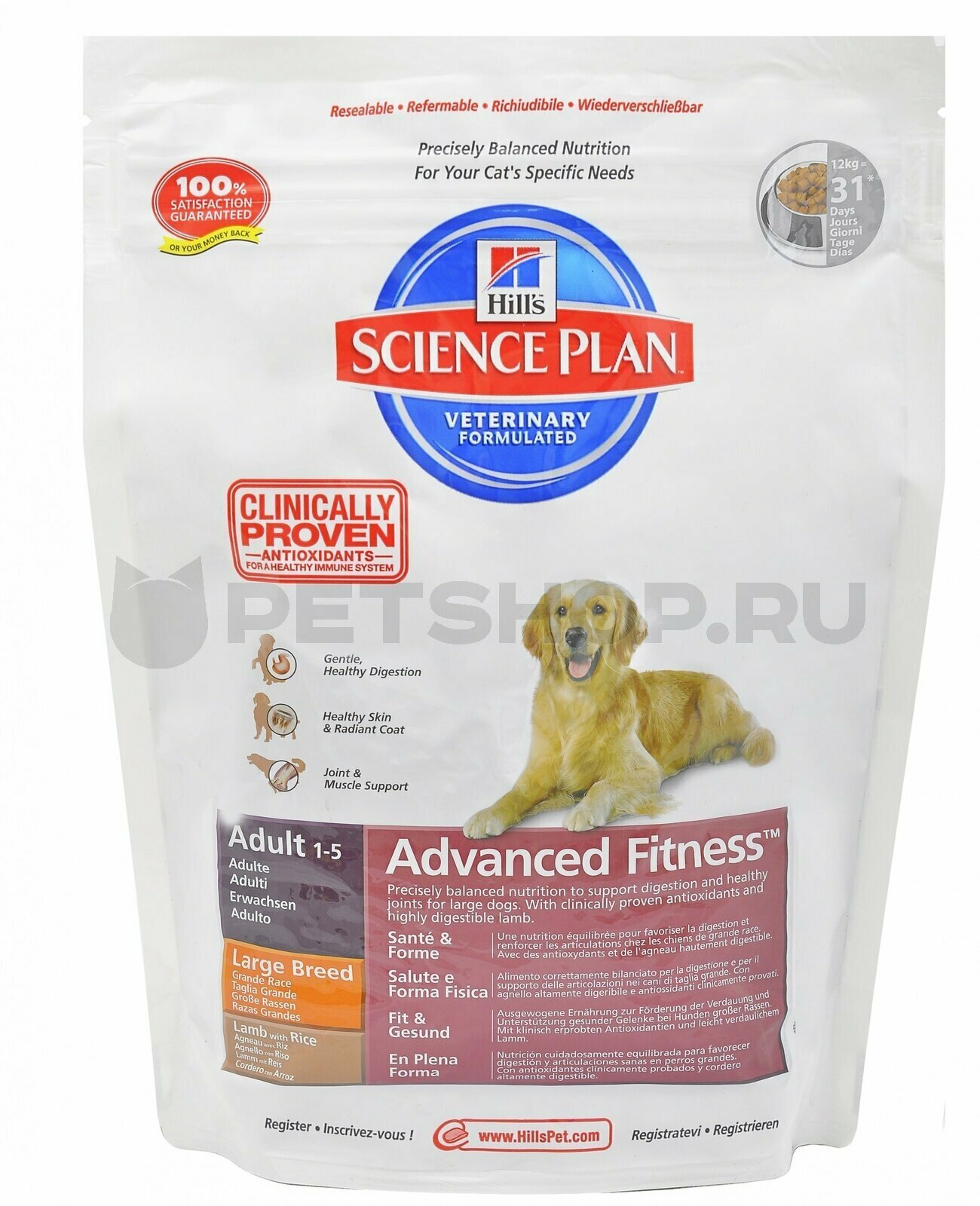 Корм Hill's Science Plan Advanced Fitness для собак крупных пород от 1 до 5 лет ягненок с рисом, 12 кг