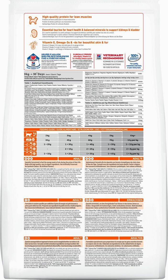 Hills Science Plan Сухой корм для взрослых кошек с ягненком (Adult Lamb) 604067, 3,000 кг (2 шт)