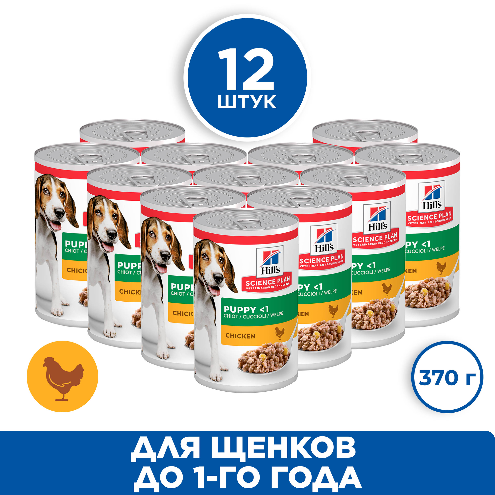 Корм консервированный Hill's Science Plan для щенков, для поддержания здорового роста и развития, с курицей,12шт 370 г