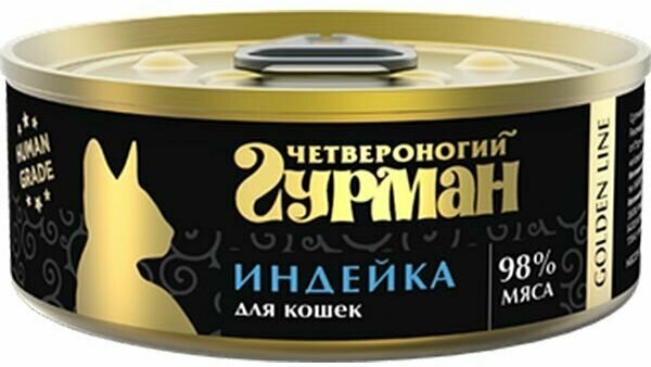 Четвероногий Гурман Золотая линия влажный корм для взрослых кошек, индейка натуральная в желе 100 гр (10 шт)