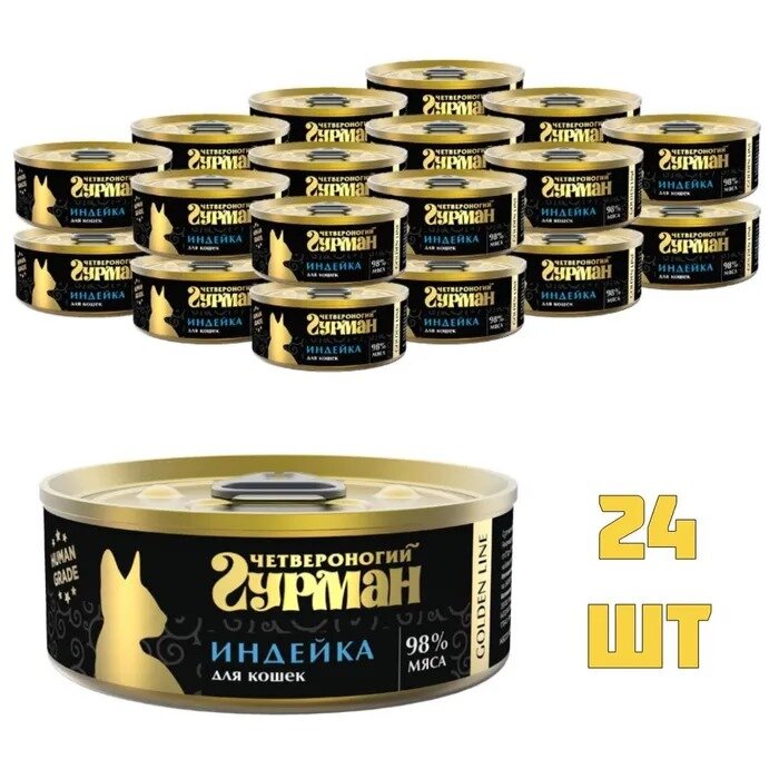 Купить Корм консервированный для кошек Четвероногий Гурман "Golden line Индейка натуральная в желе", 100 г х 24 шт