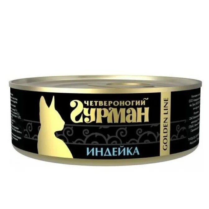 Четвероногий Гурман Корм консервированный для кошек Golden Индейка 100 г