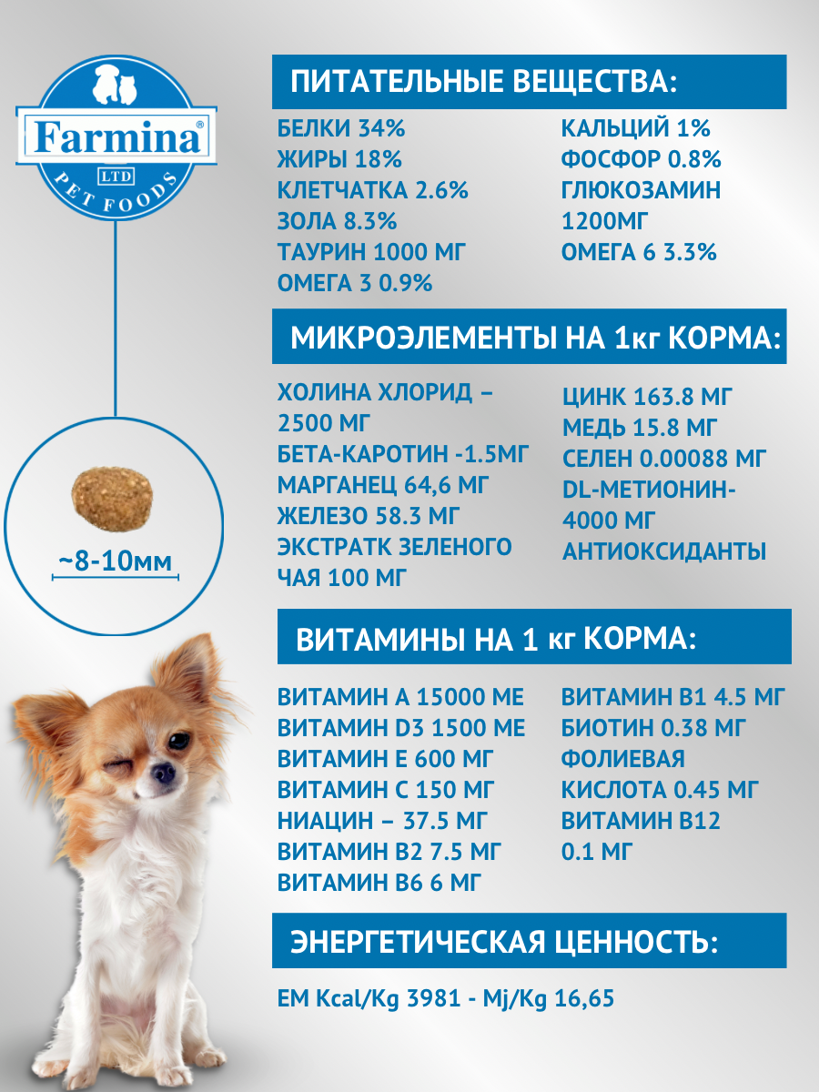 Сухой Беззерновой корм Фармина для взрослых собак Мелких пород Ягненок с Черникой 7 кг