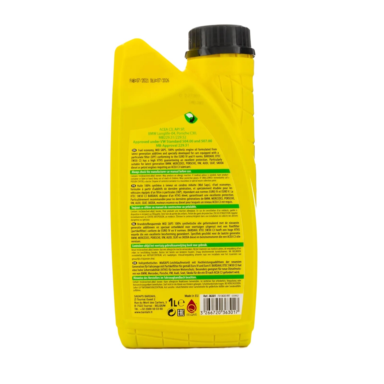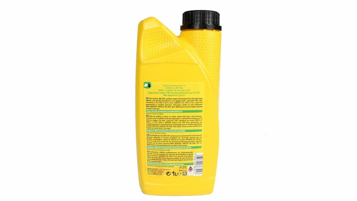 BARDAHL 36308 36308 5W30 XTEC C3 20L (синт. моторное масло) BARDAHL 1шт