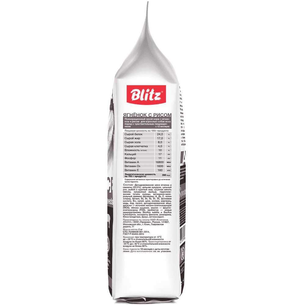 BLITZ сух. корм д/взрослых собак Ягненок/рис 2кг