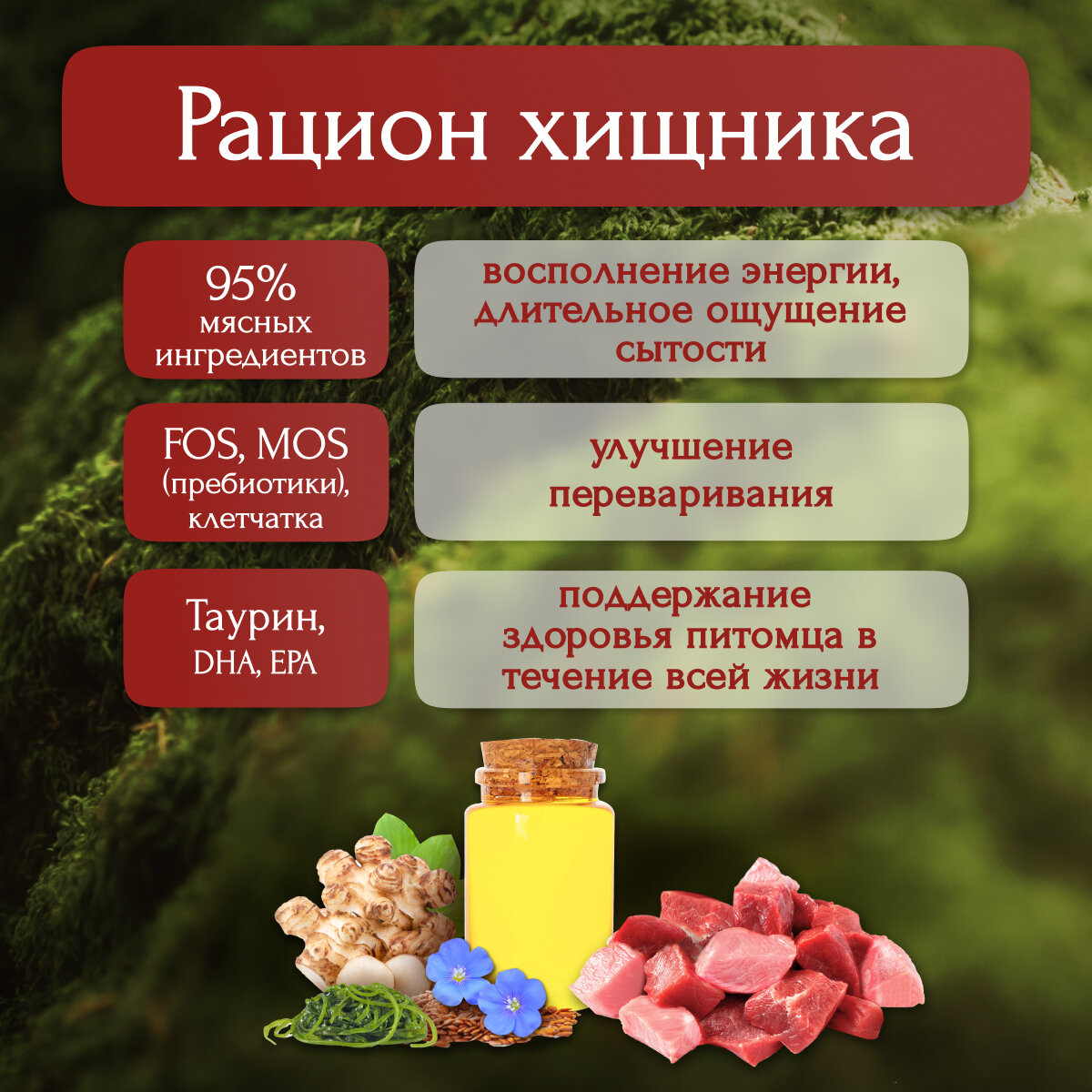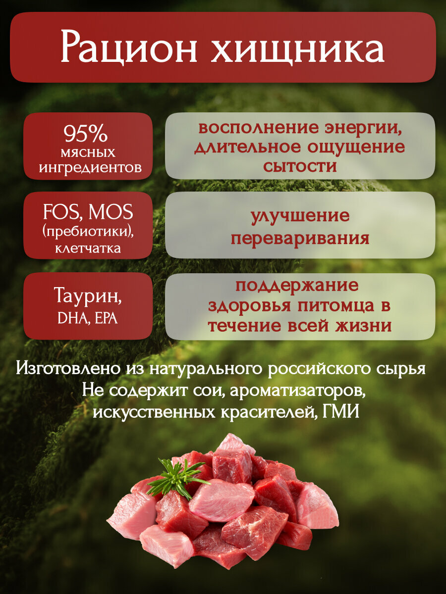 | Состав | говядина, курица, баранина, субпродукты мясные, мясо птицы, топинамбур, льняное масло, ламинария, натуральная желирующая добавка, таурин, соль, витаминно-минеральный комплекс, вода |