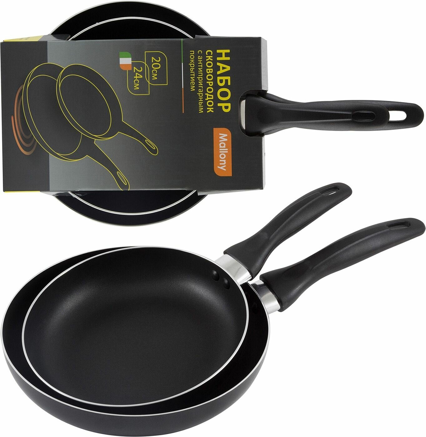 Набор Сковородок с антиприг-м покр-м с бакелитовой ручкой MAL-SET-20/24 диа 20 и 24 см тм Mallony ( .