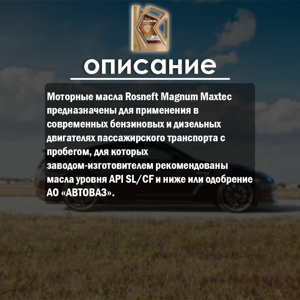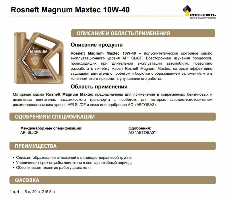 масло Rosneft Magnum Maxtec 10w40 (SL/CF) 4л п/с (увеличение срока службы двигателя)