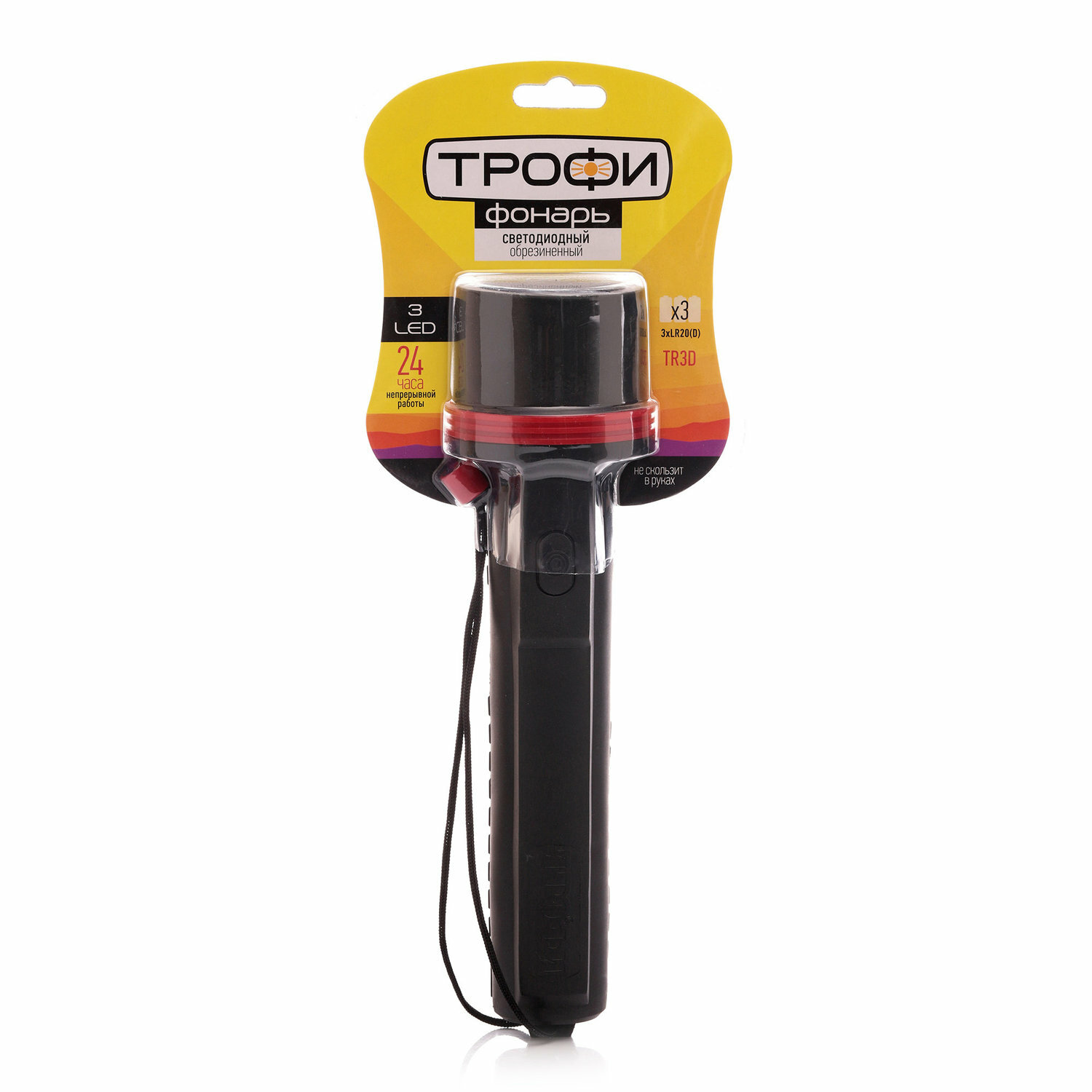 Светодиодный фонарь Трофи TR3D ручной на батарейках резина