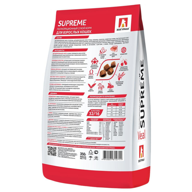 Зоогурман Supreme сухой корм для взрослых кошек с телятиной - 350 г
