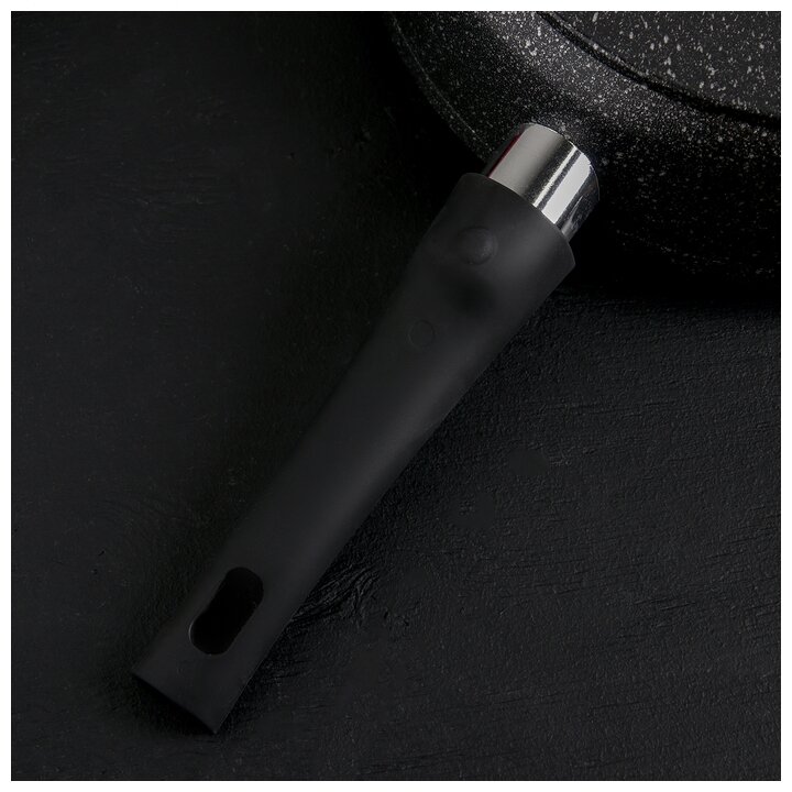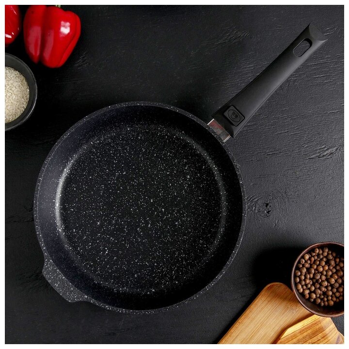 Сковорода, d: 28 см, съемная ручка, антипригарное покрытие, темный мрамор