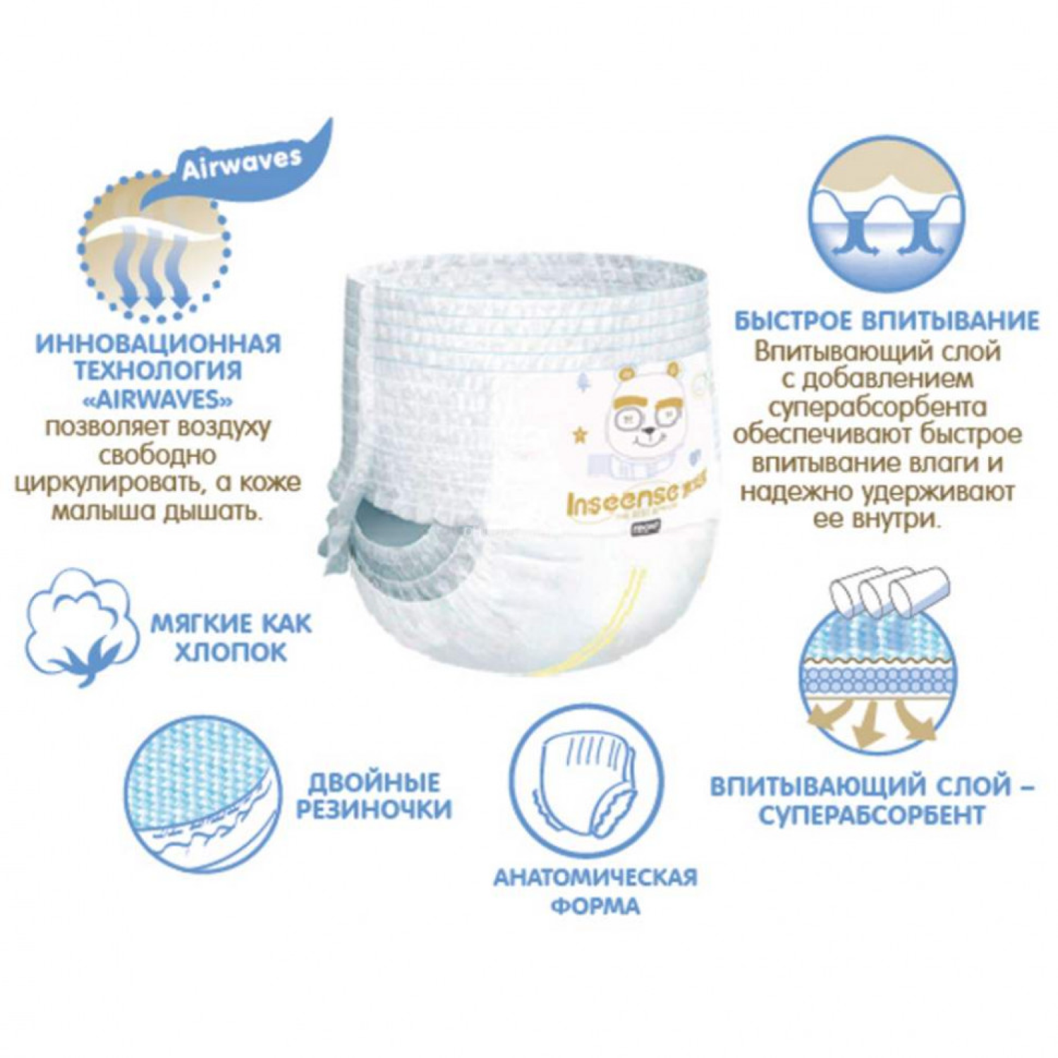 Подгузники-трусики INSEENSE M V6 супертонкие (6-11кг) 46шт