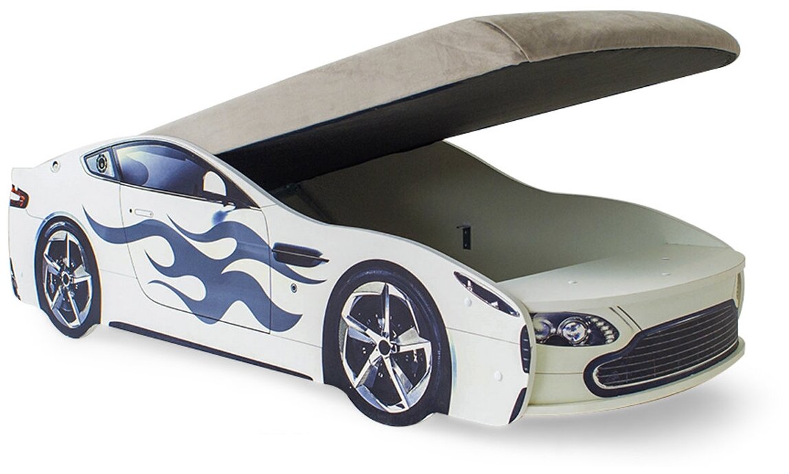 Детская кровать машина с подъемным механизмом, бортиком и матрасом Бондмобиль белый