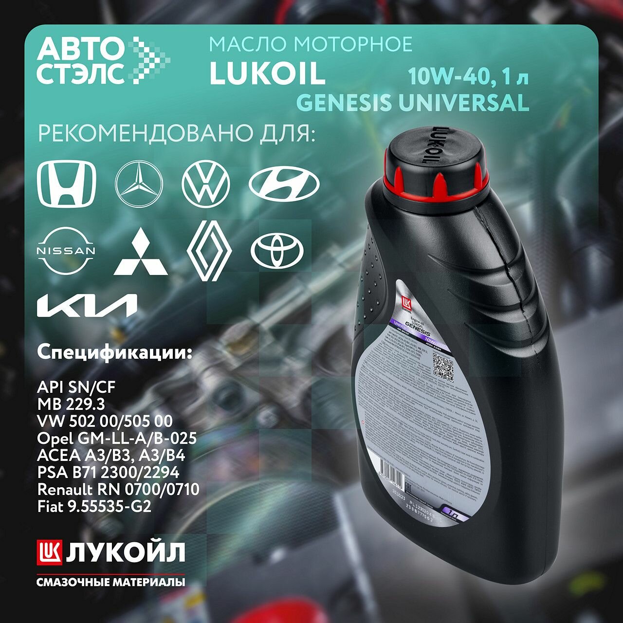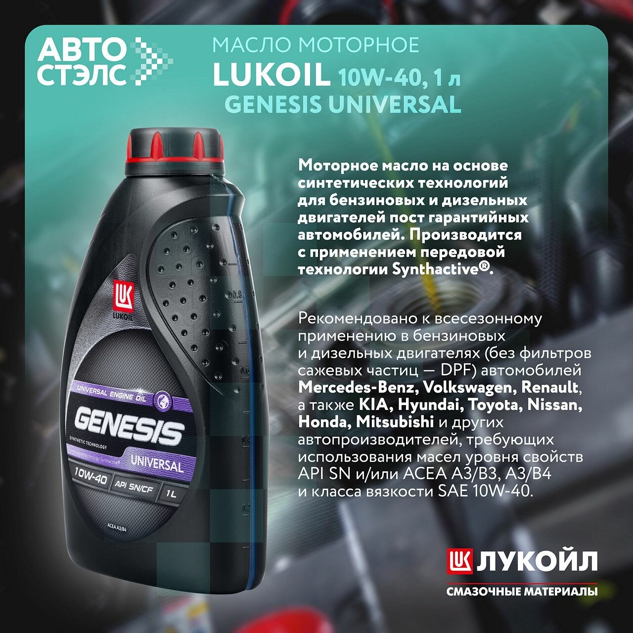 Синтетическое моторное масло ЛУКОЙЛ Genesis Universal 10W-40, 1 л, 1 кг, 1 шт