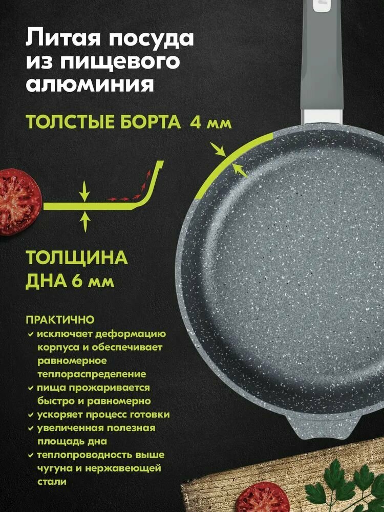 Сковорода Мечта 30 см Гранит с антипригарным покрытием с несъемной ручкой, НЕ индукционная