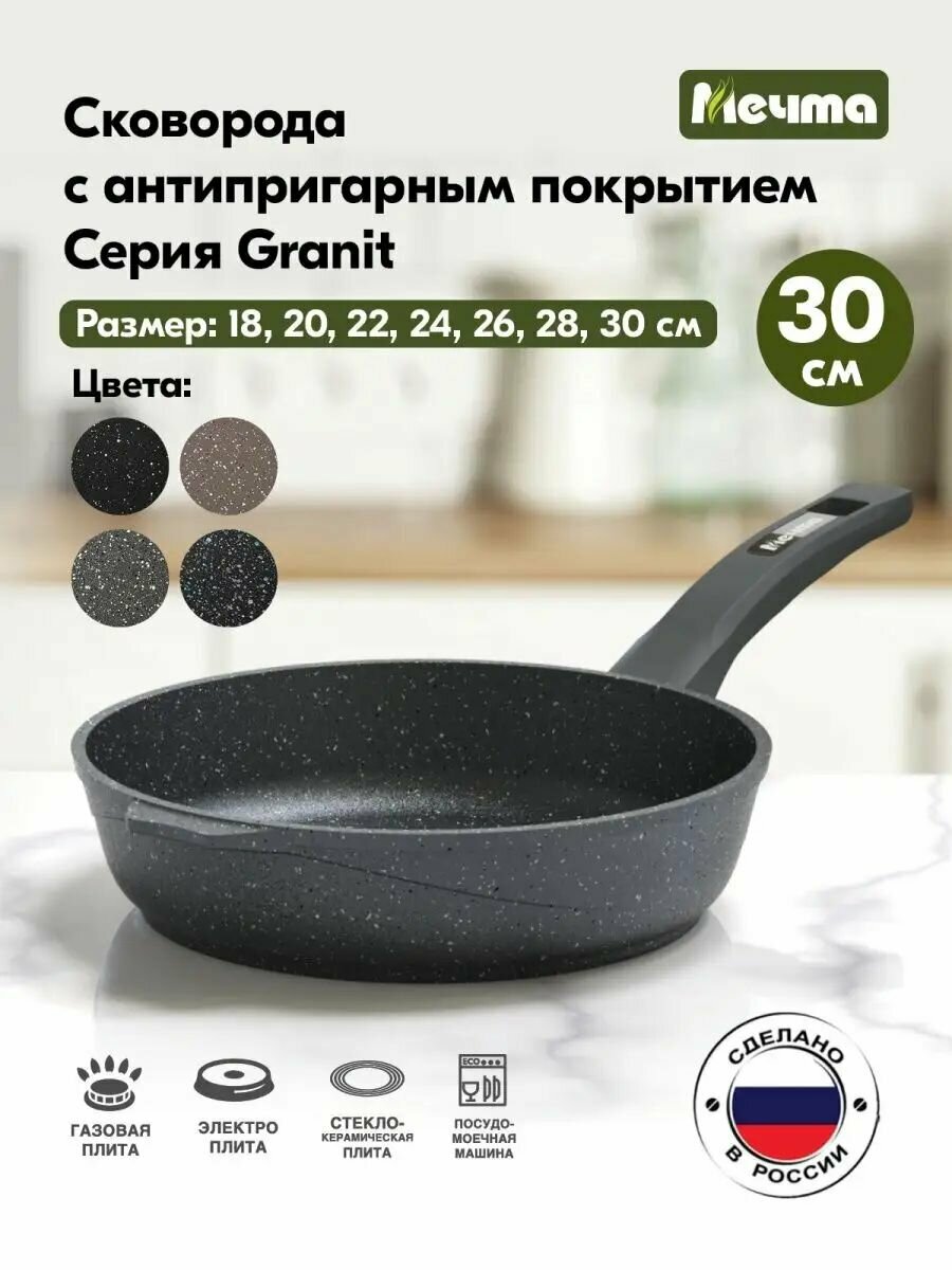 Сковорода "Мечта" 30см Гранит с антипригарным покрытием с несъемной ручкой, можно мыть в посудомоечной машине