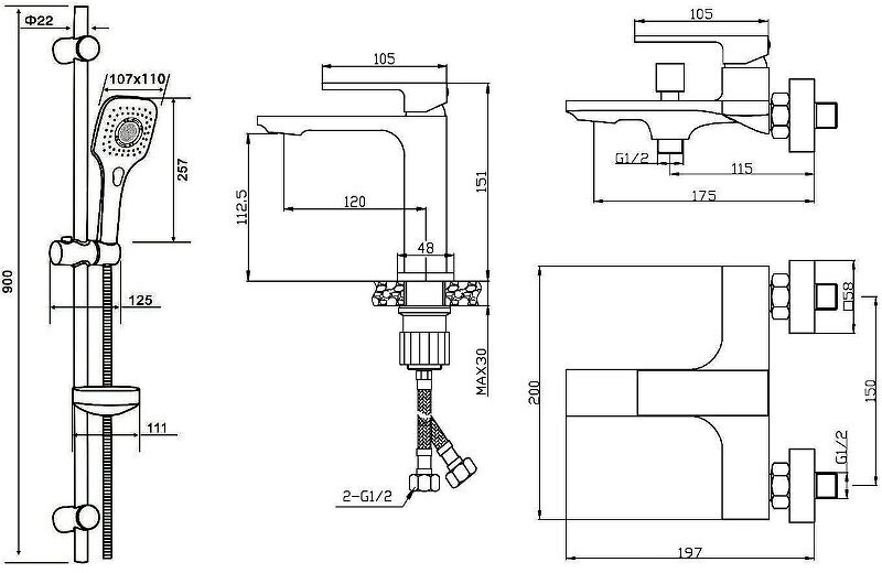 Душевой комплект Orange Lutz M04-311cr хром интересное: