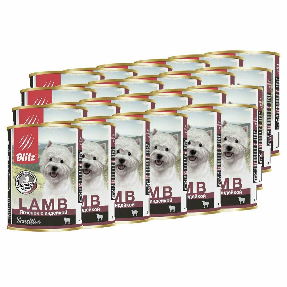 Blitz Sensitive Adult Dog влажный корм для взрослых собак с чувствительным пищеварением, с ягненком и индейкой, в консервах - 400 г х 24 шт