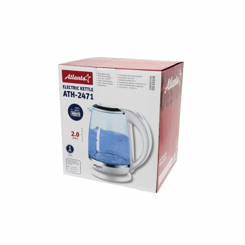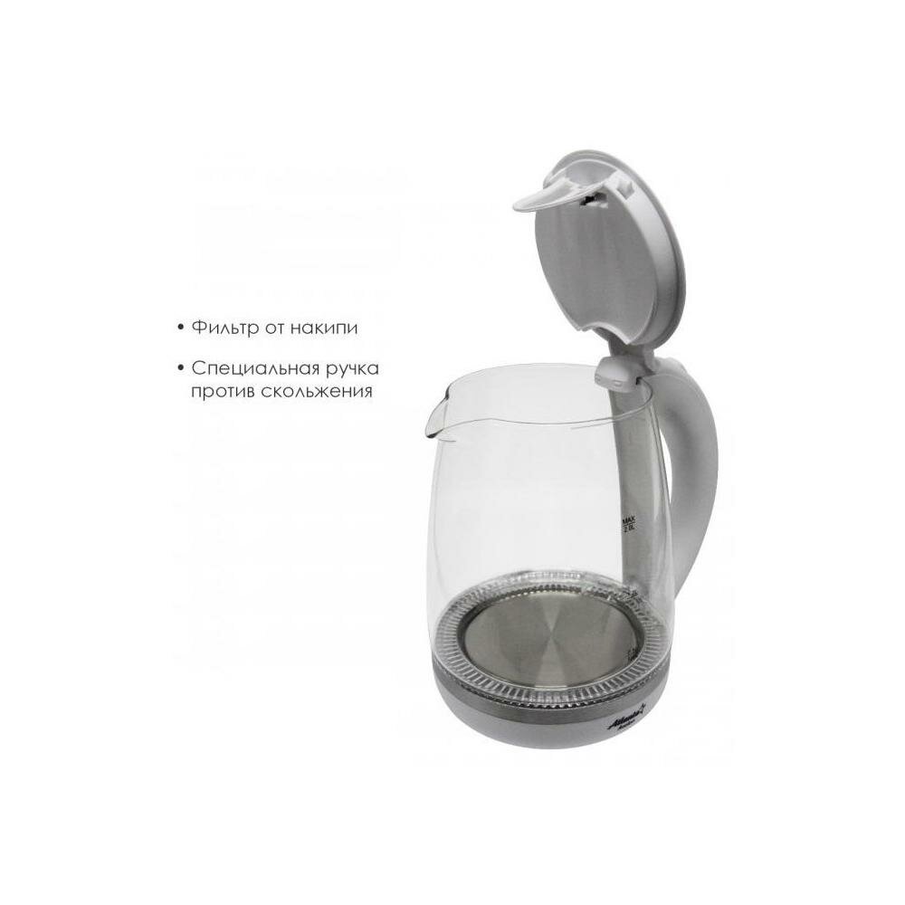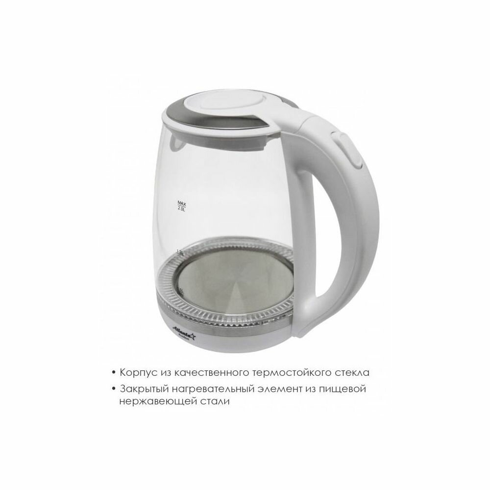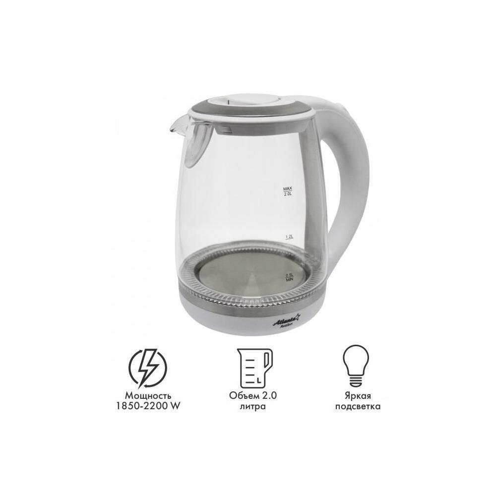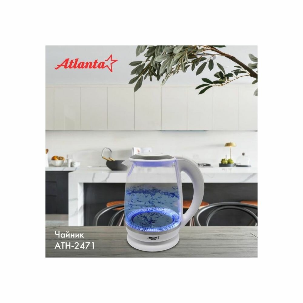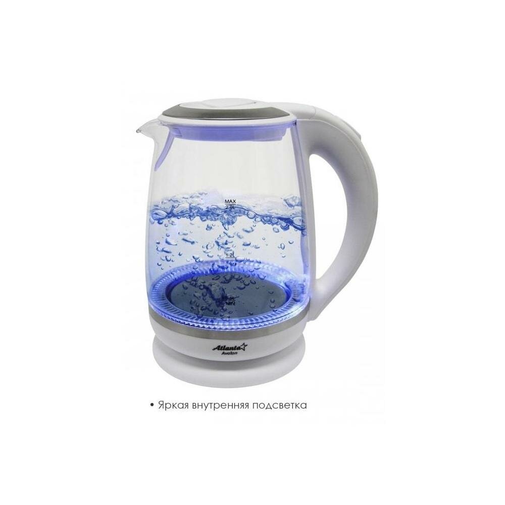 Чайник электрический ATLANTA ATH-2471 стеклянный, 2,0 л, белый