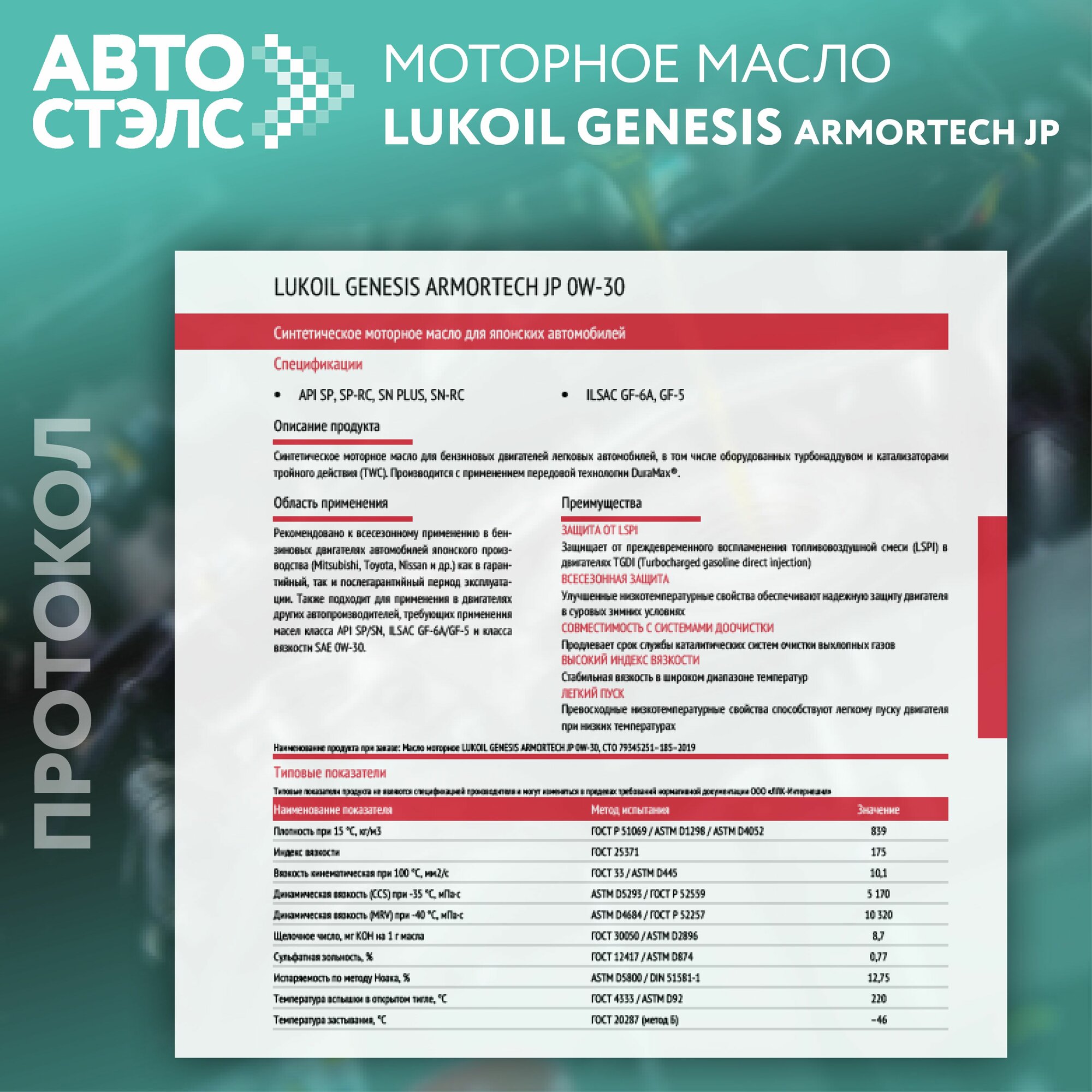 Масло моторное лукойл genesis armortech jp 0w-30 синтетическое 1 л 3173835
