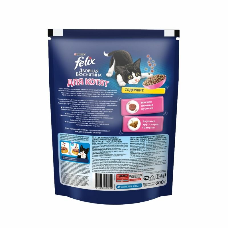 Felix Сухой корм для котят Двойная вкуснятина 1242589112509815, 0,6 кг, 42802