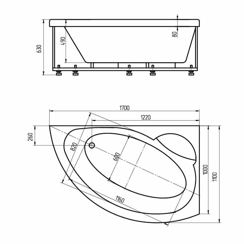 Акриловая ванна Aquatek Аякс 2 170x100 L AYK170-0000085 без гидромассажа с фронтальной панелью с каркасом (вклеенный) со слив-переливом