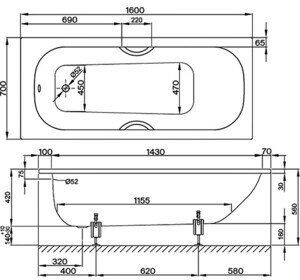 Ванна RAVAK Classic 120x70 акрил