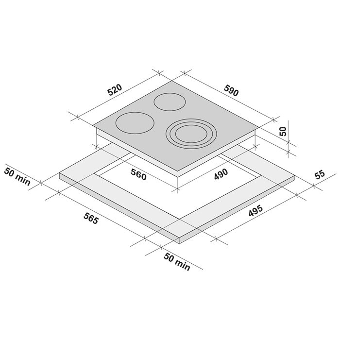 | Размеры конфорок | 150 мм, 165 мм, 200 мм, 220 мм, 300 мм |