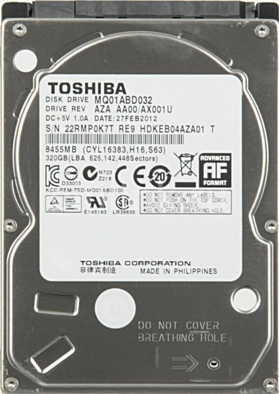 320Gb Toshiba (mq01abd032) sata 3Gb/s, 5400 rpm, 8mb buffer .