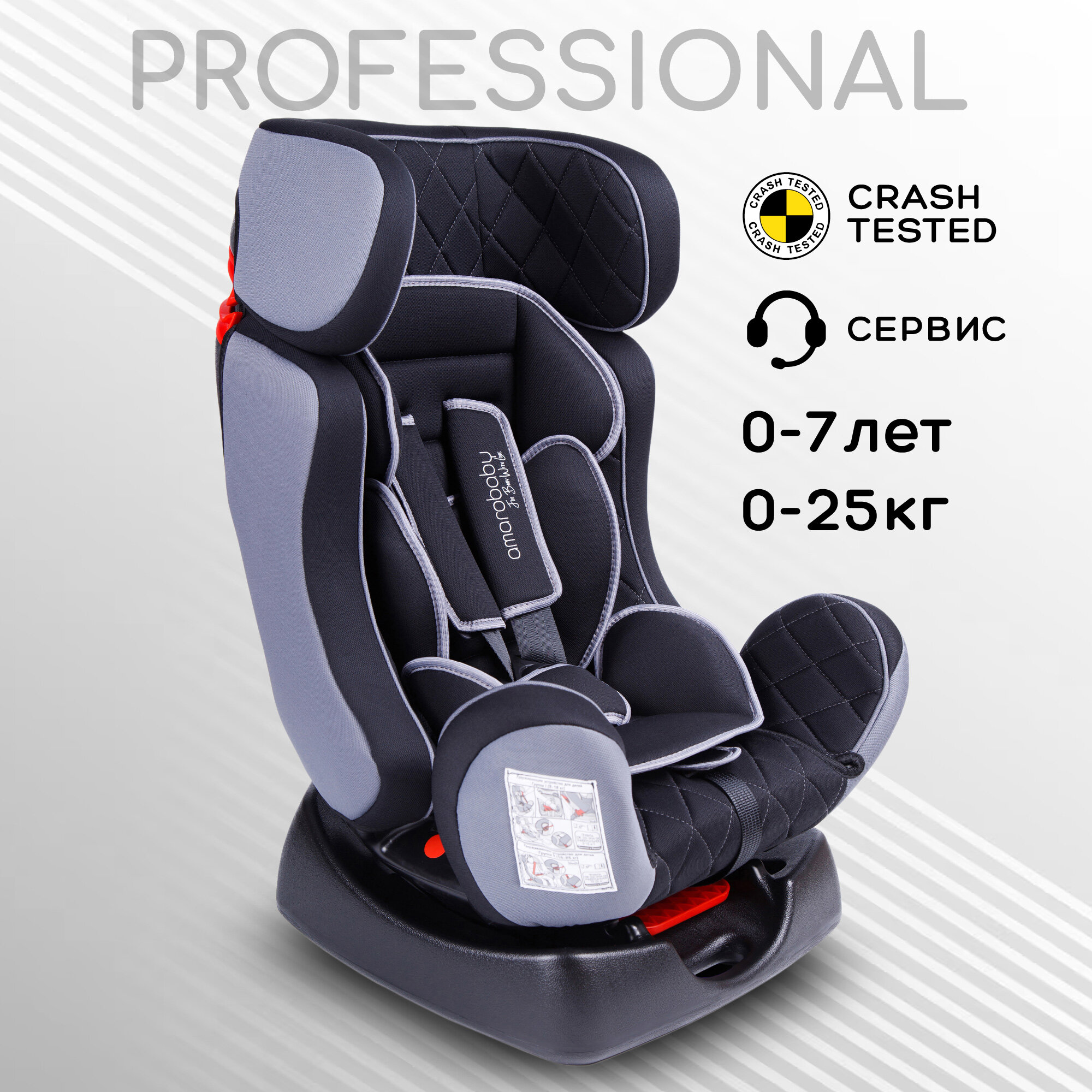Купить Автокресло Amarobaby Professional, группа 0 /I/II, (чёрный/серый), AB212005PChS/09