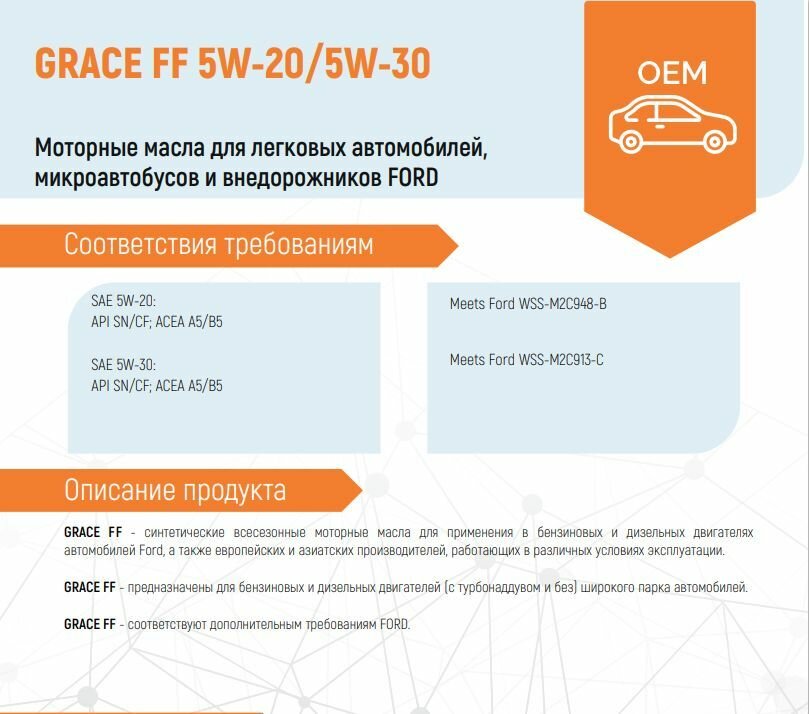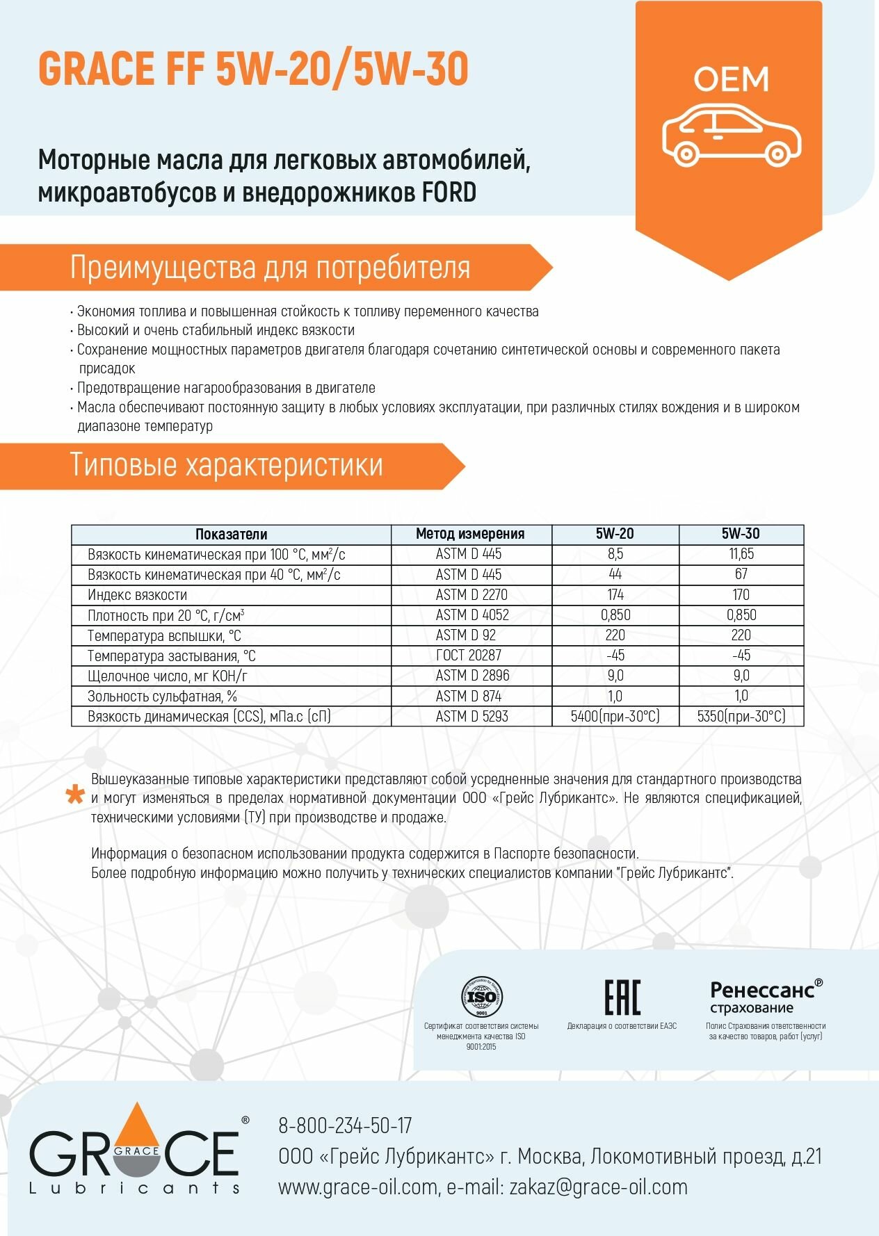 Купить GRACE-OIL 4603728812496 Масло моторное для FORD FF 5W30 синт.1л GRACE