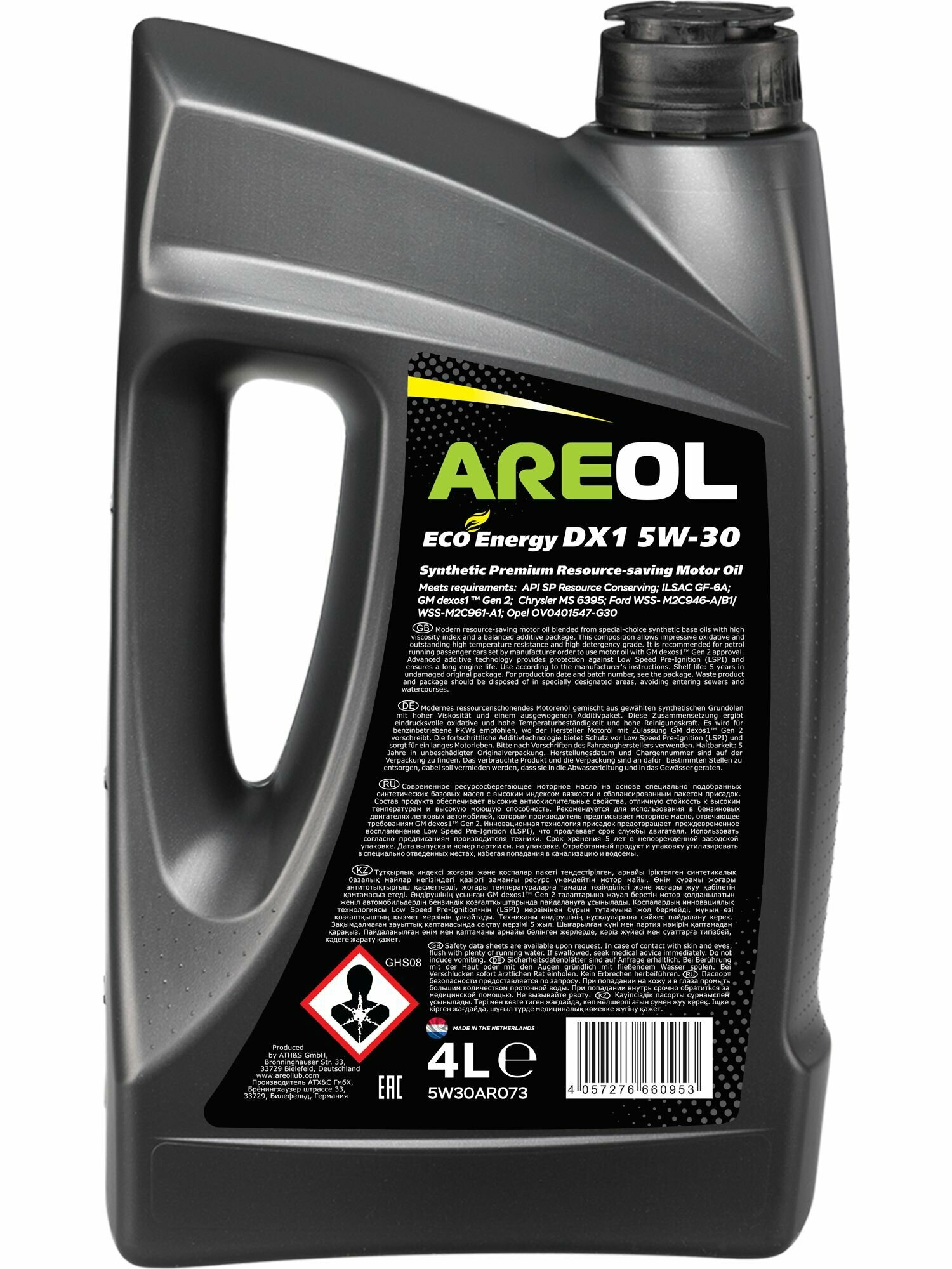 AREOL 5W30AR073 AREOL ECO Energy DX1 5W30 (4L)_масло моторное! син.\API SP RC, ILSAC GF-6A, Dexos1 Gen 2 1шт