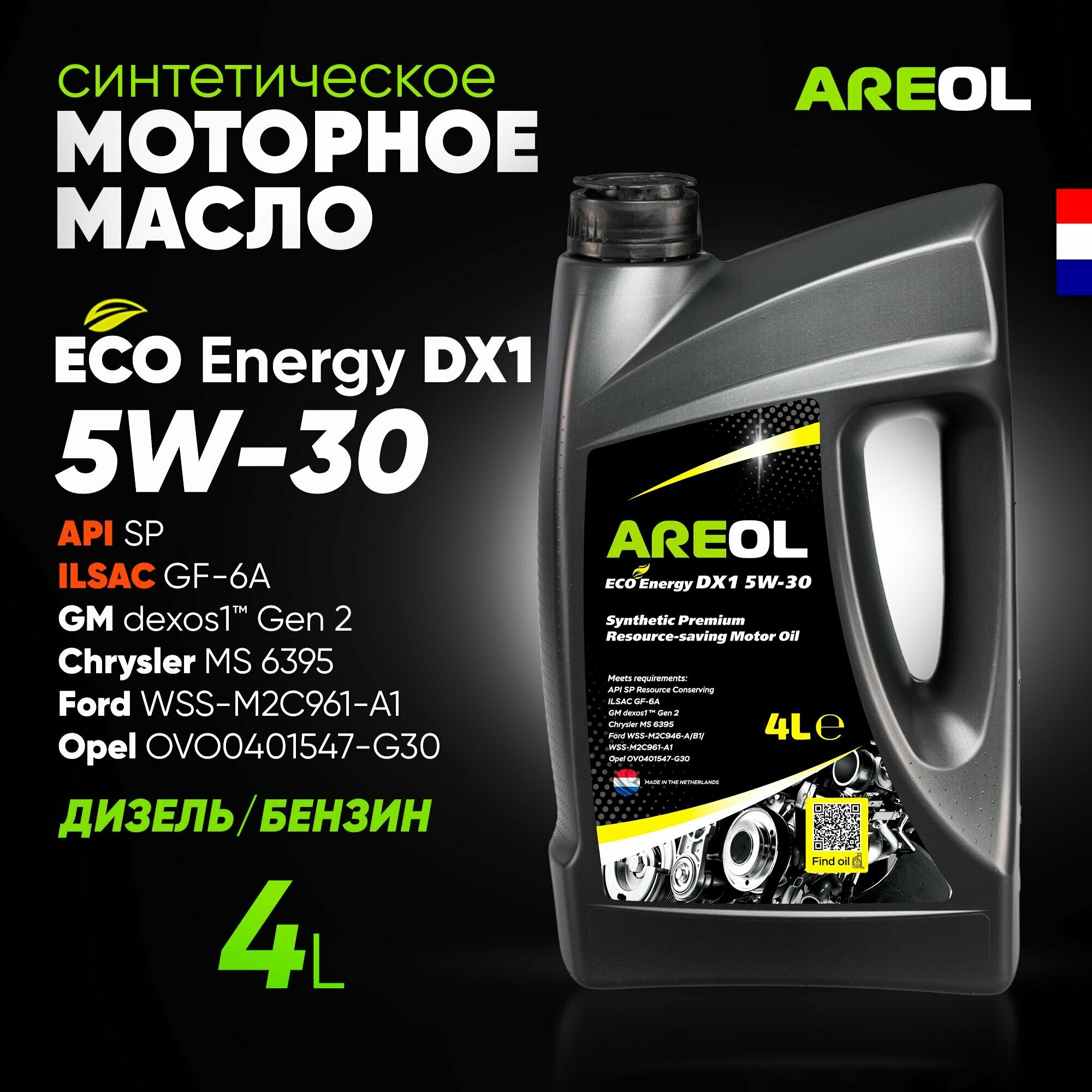 areol eco energy dx1 5w30 (4l)_масло моторное! син.\api sp rc, ilsac gf-6a, dexos1 gen 2