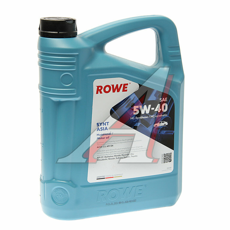 ROWE 20246-0050-99 Масло моторное ROWE HIGHTEC SYNT ASIA SAE 5W-40 (5л) С3 SN/CF Daihatsu, Honda, Hyundai, Kia, Mitsubishi, Nissan, Subaru, Suzuki, Toyota