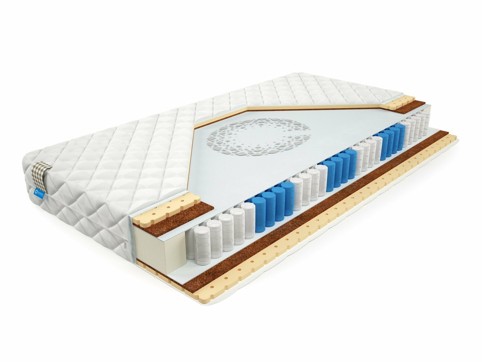 | Дополнительная информация | состав: съемный чехол «white plaid», натуральный латекс h - 2 см, латексированный кокос h - 1 см, термовойлок (опция - BioCrystal 50 гр.), SilverSpringPocket 7 zone 580 пр/сп.м h - 14 см, термовойлок, латексированный кокос h - 1 см, натуральный латекс h - 2 см, укрепляющий короб, внутренний чехол |
