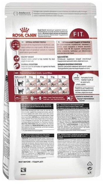 Корм для кошек Royal Canin Fit 32 (Фит 32) Корм сухой сбалансированный для взрослых умеренно активных кошек от 1 года,2 кг