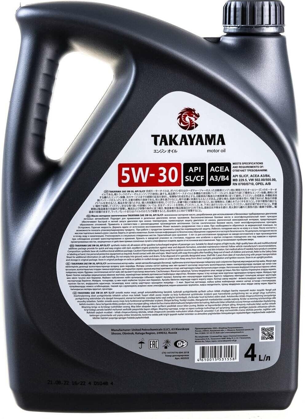TAKAYAMA Рњр°Сѓр»Рѕ Рјрѕс‚Рѕсђрѕрѕрµ Сѓрёрѕс‚Рµс‚Рёс‡Рµсѓрєрѕрµ "Motor Oil 5W-30", Api Sl/Cf 4Р» (Рїр»Р°Сѓс‚Рёрє)
